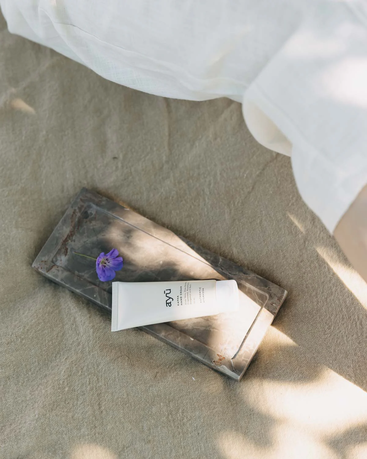 Præsenter dine hudpleje produkter, parfumer, makeup mm. på smukkeste vis med denne eksklusive marmor bakke. Den naturlige skønhed i marmoren gør hver bakke unik, med små variationer i farve og mønster, der giver et tidløst og personligt præg.