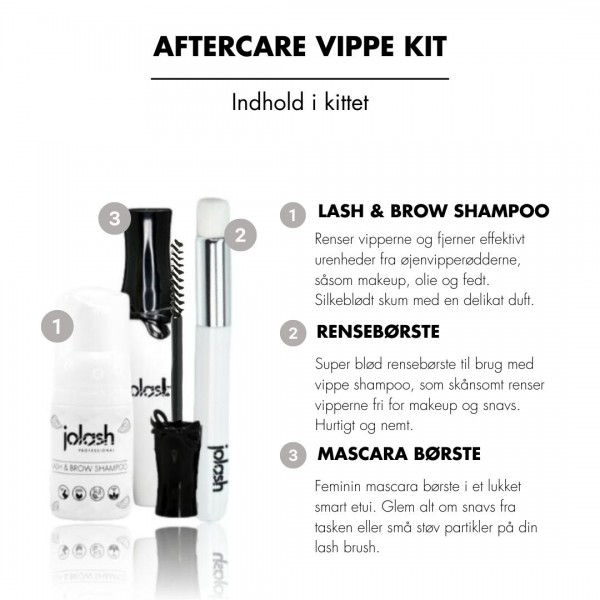 Når det kommer til eyelash extensions, er korrekt efterbehandling og hygiejne omkring øjnene af afgørende betydning. Aftercare sættet fra jolash indeholder alle nødvendige produkter for at opretholde både sundhed og holdbarhed af dine eyelash extensions.